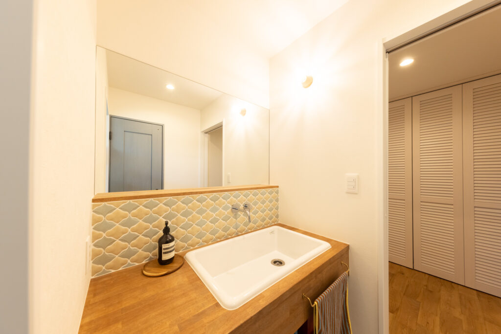 また、毎日使う場所だからこそ、使い勝手とデザインの両立を追求しています。木の質感を活かした造作洗面や、照明の灯りが心地よいこだわりのトイレなど、L chairsらしい細やかな提案が日々の生活を豊かに彩ります。